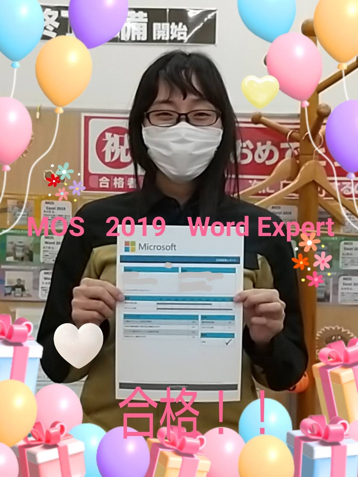 そして、今回見事「MOS 2019 Word Expert」に合格されました✨